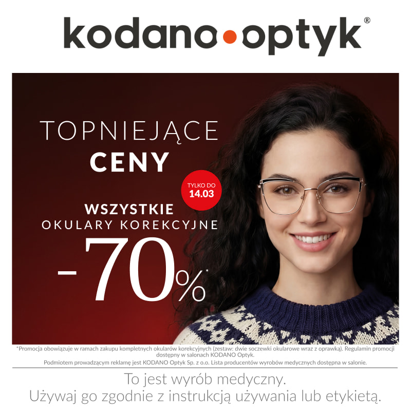 1. Oferta ważna do 14.03.2026 r. 2. Promocja obowiązuje w ramach zakupu kompletnych okularów korekcyjnych (dwie soczewki okularowe wraz z oprawą). 3. Szczegóły i regulamin promocji dostępne w salonie.